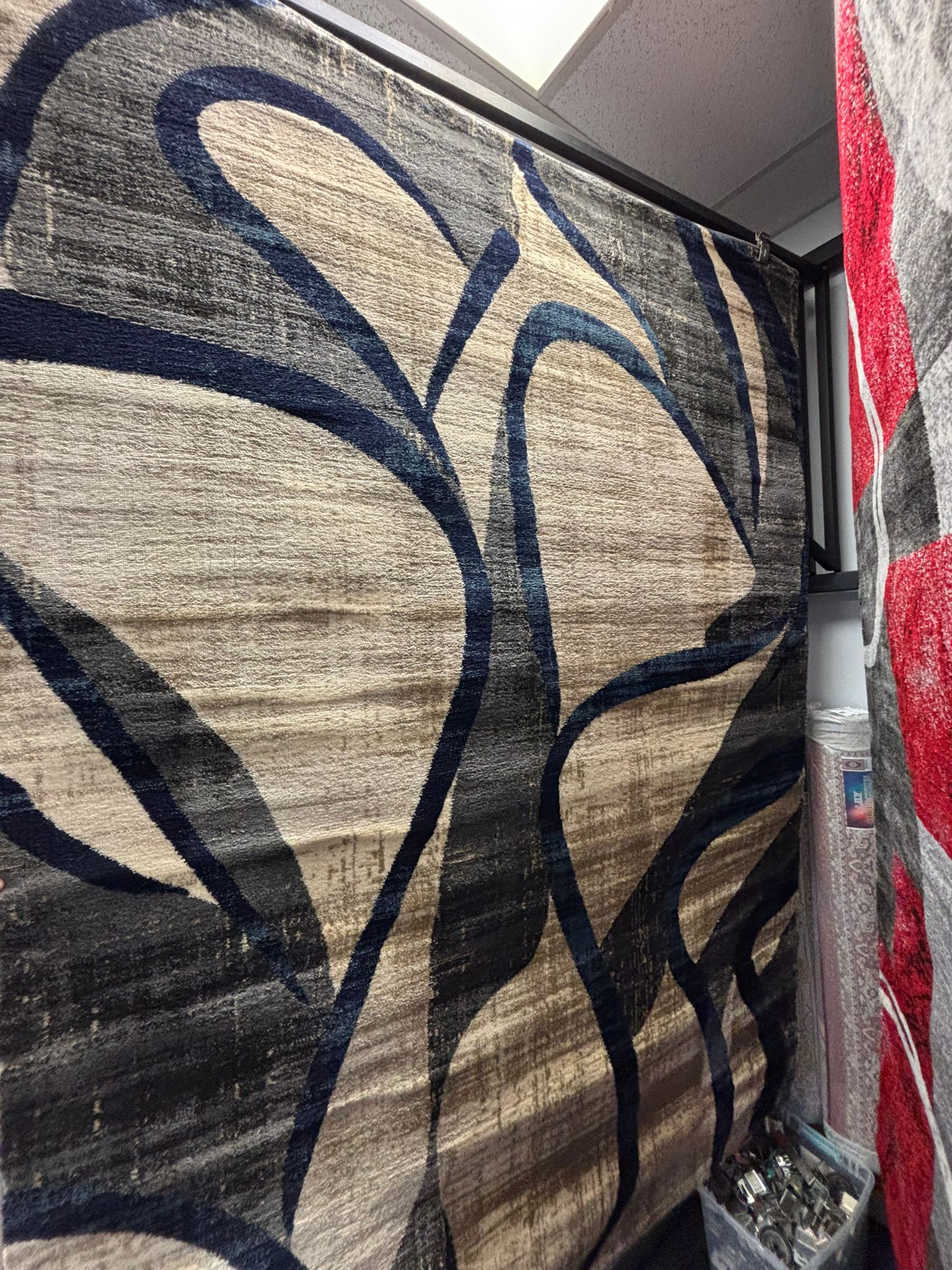 Bring harmony and flow to your room with this abstract wave rug. Featuring dark grey, charcoal, and navy blue tones, this design evokes motion and elegance, making it ideal for minimalist or modern interiors. Its soft texture and durable structure are perfect for high-traffic areas such as living rooms, offices, or hallways.