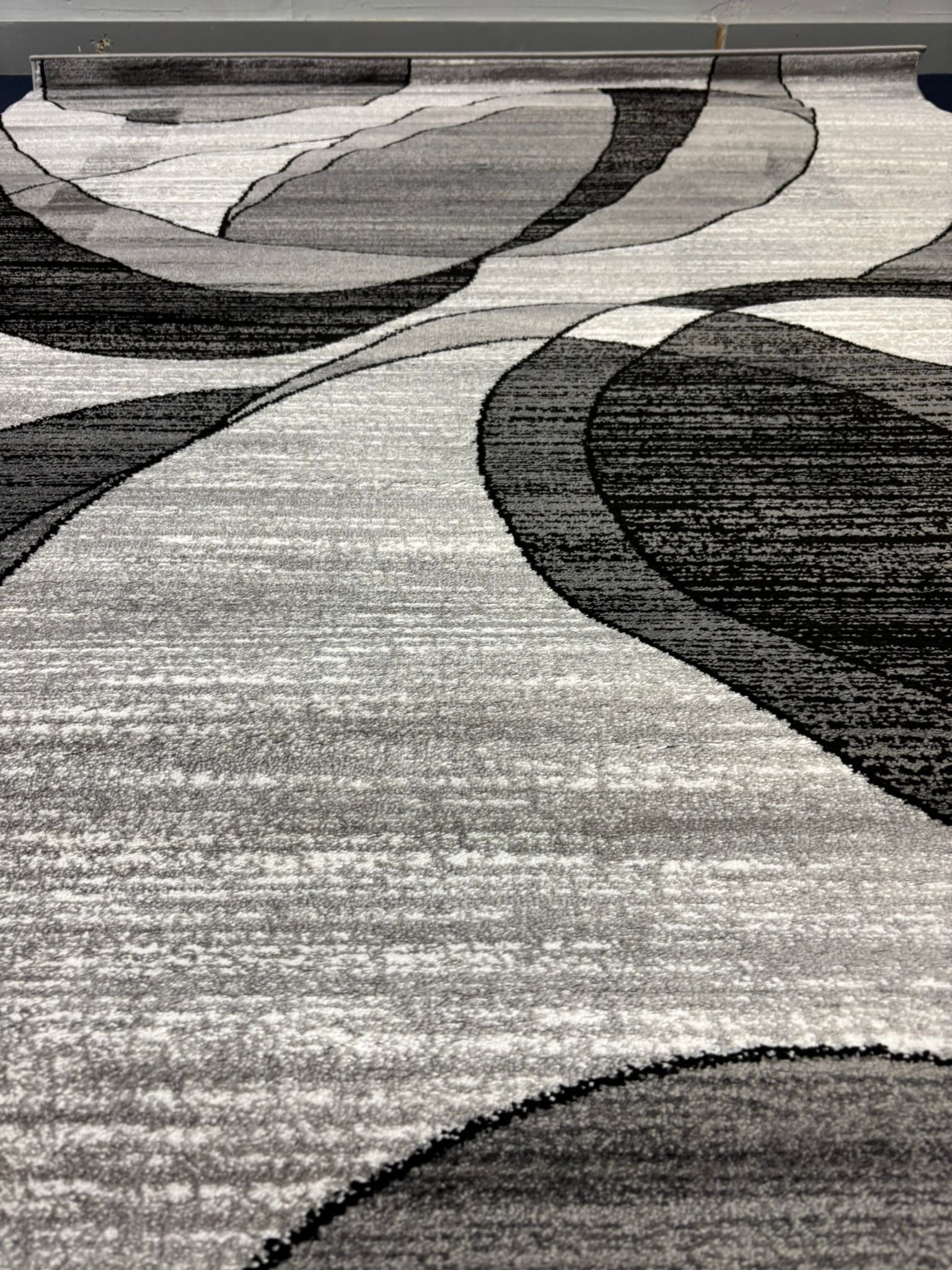 Upgrade your space with this modern oval-patterned area rug, featuring bold black curves and soft gray tones on a textured background. Perfect for minimalist and contemporary interiors, this rug adds movement and elegance to any room.