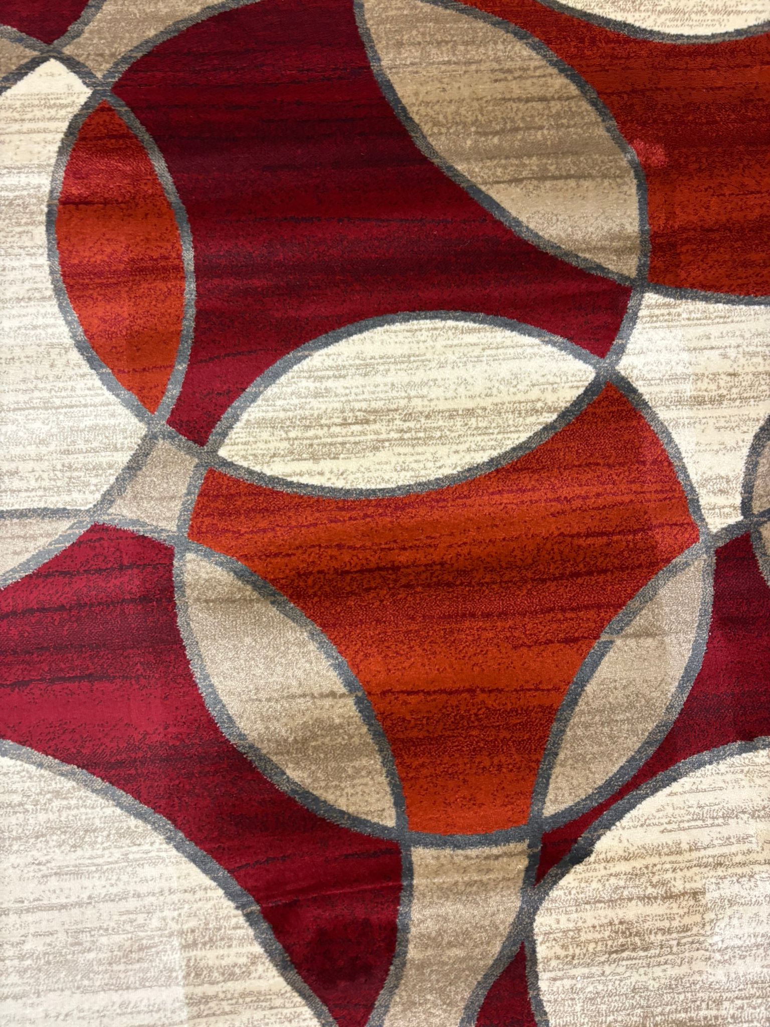 Modern Geometric Circle Rug – Red, Beige & Brown Contemporary Design | Durable & Stylish | Free USA Shipping