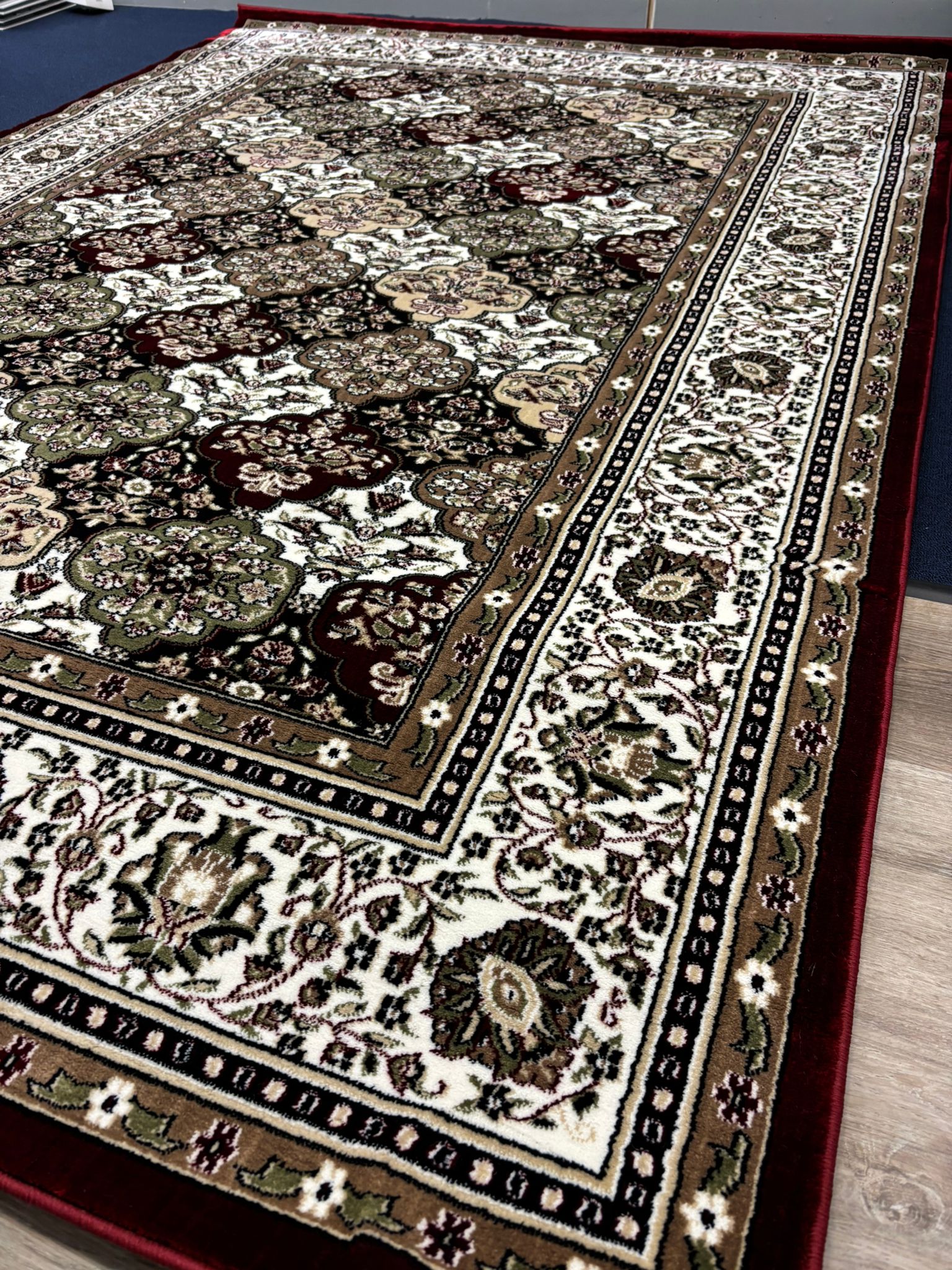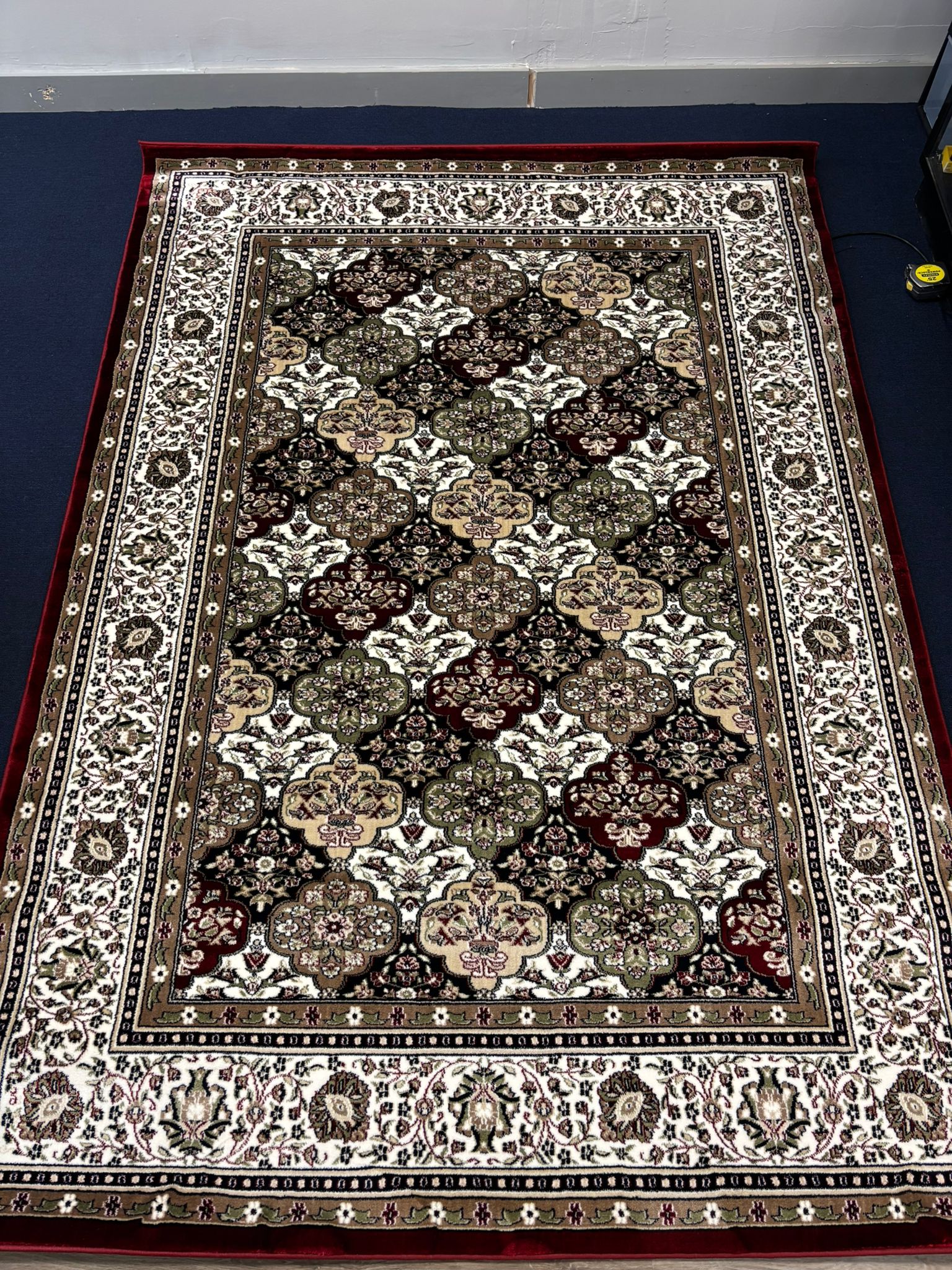 Made from a durable polypropylene and silk blend, this rug offers softness, light shine, and excellent resistance to wear and stains. The symmetrical motif layout provides a rich decorative touch, perfect for living rooms, hallways, or dining spaces