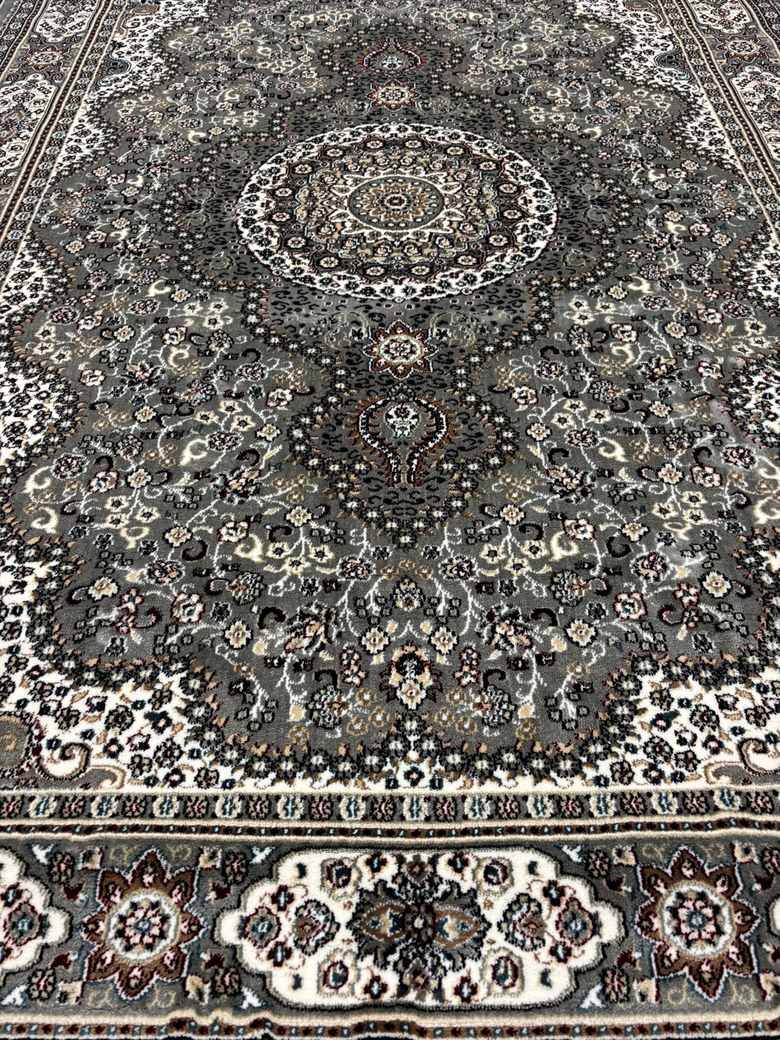 Traditional Turkish Grey Area Rug – Medallion Pattern